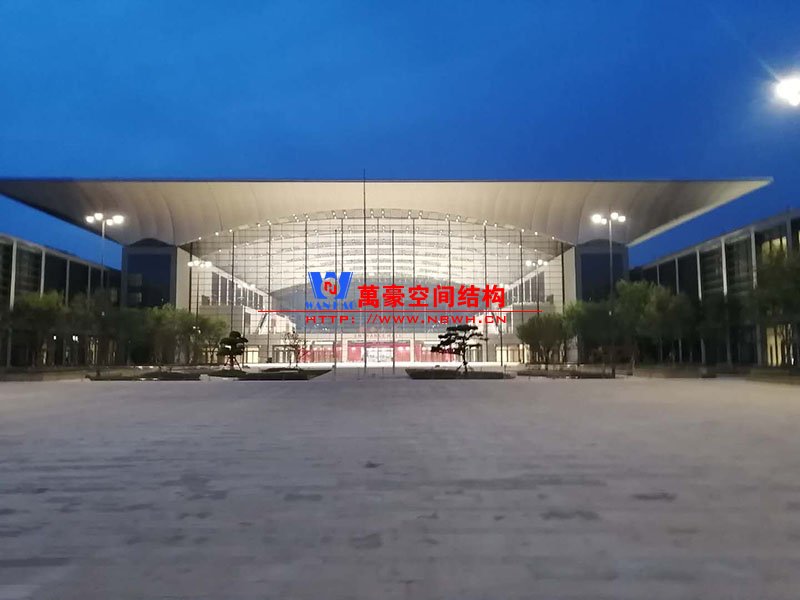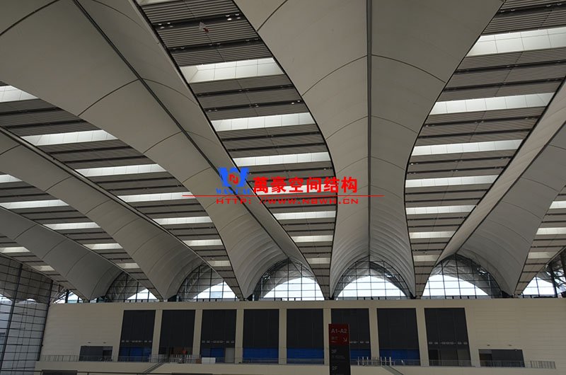 青島紅島國際會議中心幕墻膜結(jié)構(gòu)工程,由寧波萬豪空間結(jié)構(gòu)工程有限公司承建,現(xiàn)場測量、深化設計、制作及安裝由寧波萬豪全權(quán)負責。該工程用鋼量1000多噸,PTFE室內(nèi)屋面膜結(jié)構(gòu)展開面積17000多平方米,PTFE室外屋面膜結(jié)構(gòu)展開面積20000多平方米。