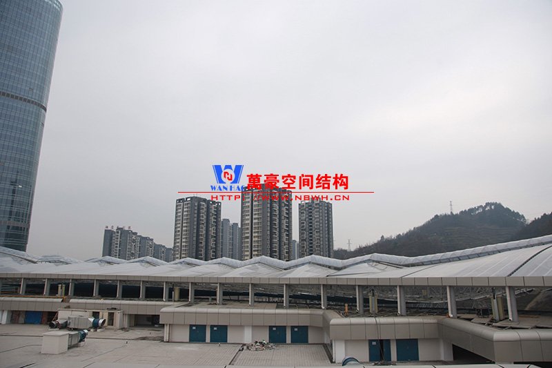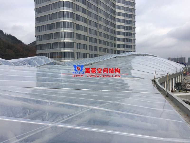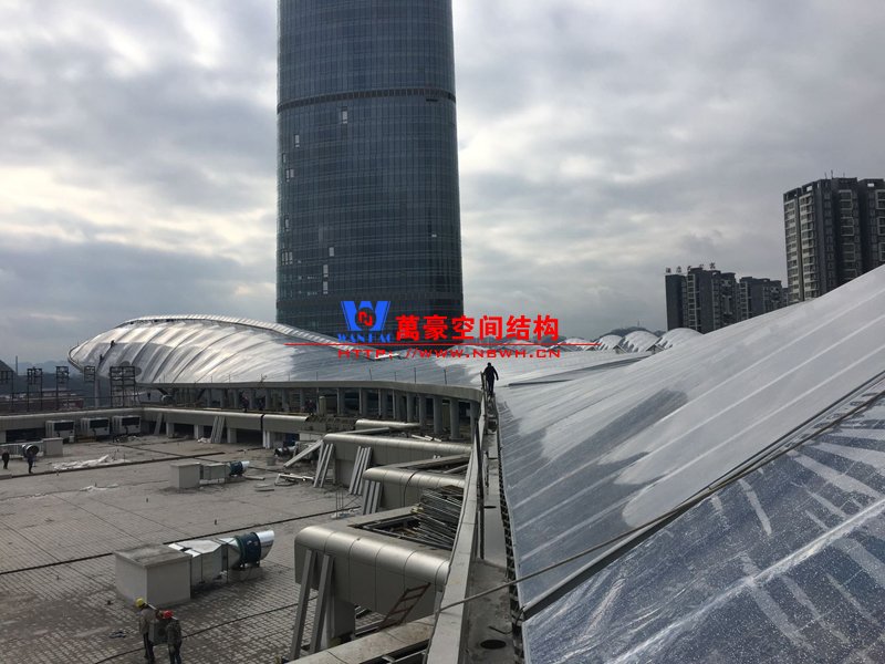 遵義高鐵新城天幕膜結構工程用鋼量500噸,膜展開面積8000平米。
