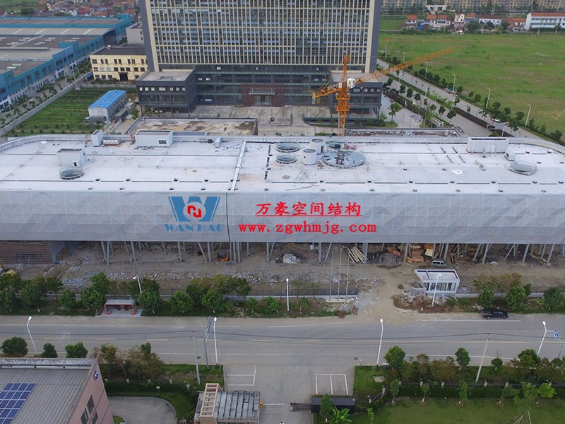 寧波菲仕展廳外立面網格膜結構項目,方案由意大利著名建筑師設計,設計靈感取鉆石之意。為了實現多變的設計效果,整個外立面采用了8000根形狀各異的鋼構件,每根桿件單獨編號、定位,實施難度極大。外層使用PTFE網格膜,樹立了PTFE網格膜使用的新標桿。用鋼量880噸,PTFE膜展開面積12660平方。