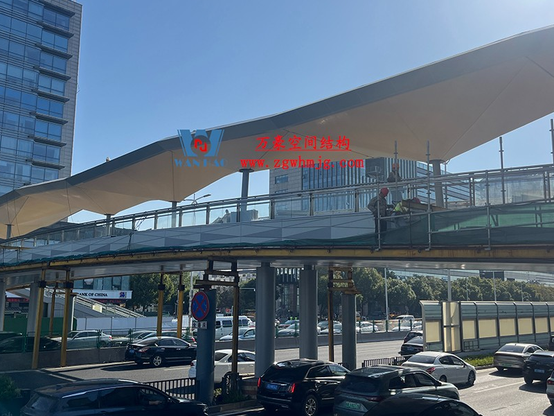 蘇州東環路人行天橋ptfe膜結構改造工程位于江蘇省蘇州市蘇州工業園內,該項目PTFE膜結構展開面積2000平米。