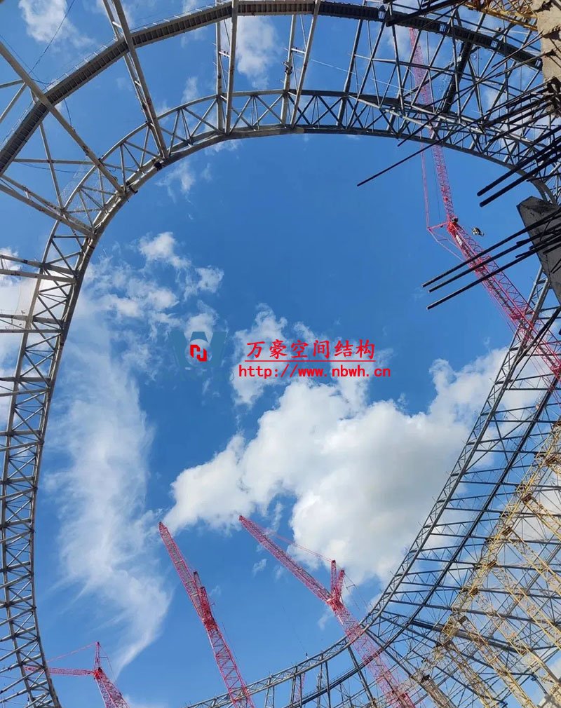 8月18日,隨著最后一榀環向桁架吊裝完成,重達14000噸的罩棚鋼結構順利封頂,重慶龍興足球場項目鋼結構全部完成,創2023年亞洲杯新建場館建設速度第一。這是重慶市打造的首座大型專業足球場,也是國內在建的規模最大專業足球場之一,其設計取意為“火鳳凰”。