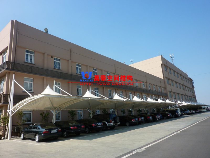 再次,膜結構車棚具有很強的透光性。我國一向提倡打造綠色環保節約型社會,膜材這個特性很好的滿足了這些需求。因為膜材漫射光的效果,膜材覆蓋的空間內將出現特別的光學效果(有明顯光感但無暗影),修建規劃中應合理使用。選用雙層膜結構車棚時,應考慮到透光率的折減。