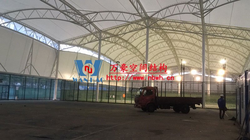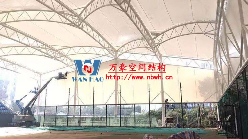 寧波(鄞州)網(wǎng)球中心遮陽棚膜結構工程二期項目,位于寧波市鄞州區(qū)首南街道文華路199號【寧波(鄞州)網(wǎng)球中心內】,整個工程用鋼量220噸,膜結構球場展開面積約6000平方米,由寧波萬豪空間結構工程有限公司承建。