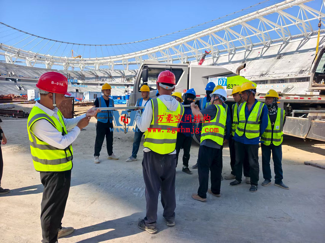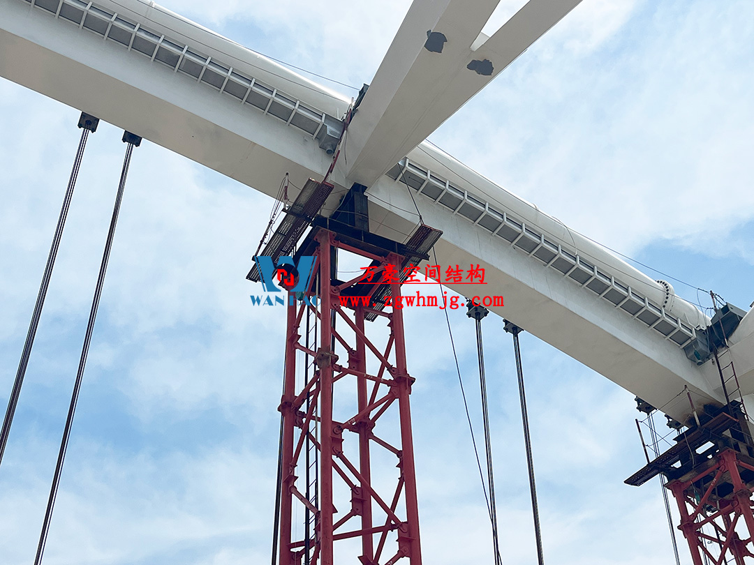 該項目采用車輻式索膜結構體系,其中膜結構由屋面內環ETFE氣枕結構、屋面外環PTFE膜結構及立面PTFE膜結構組成。 其中,屋面ETFE氣枕由萬豪空間結構深化設計及安裝,ETFE氣枕投影面積20000平方米左右。