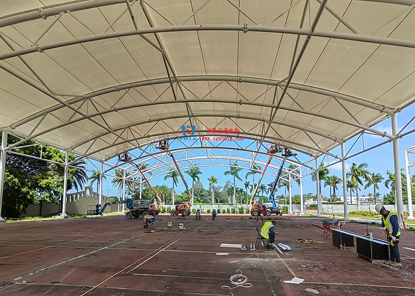 澳大利亞希望島網球中心,該項目用鋼量1160噸,網球中心屋面采用PTFE(聚四氟乙烯)膜結構,展開面積14500平方米。