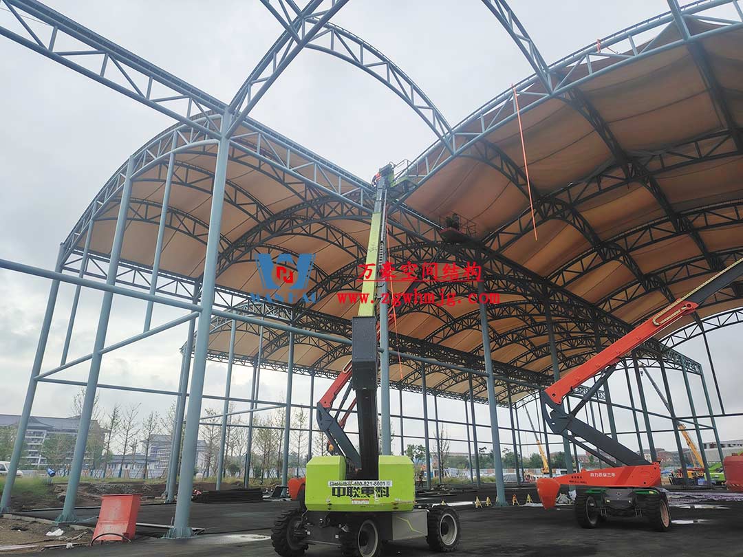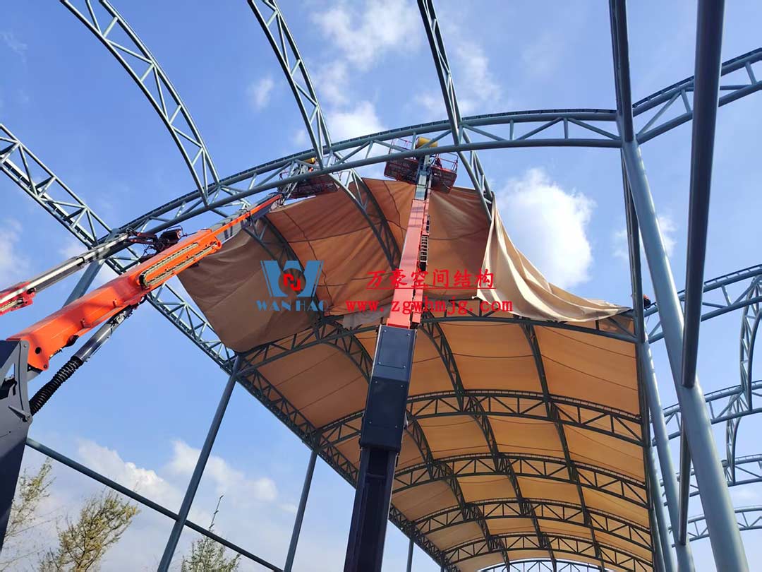 四川廣安共享體育場網球館膜結構位于廣安區官盛新區,是廣安共享體育場的一部分,PTFE膜結構展開面積5500平方米