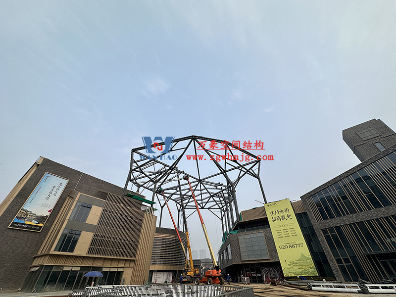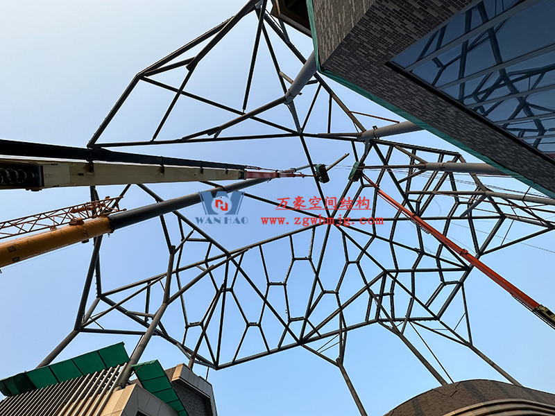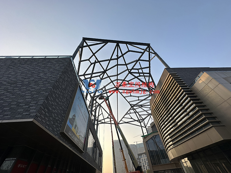 合肥文一塘溪津門天幕鋼結構及ETFE氣枕膜工程鋼結構吊裝中