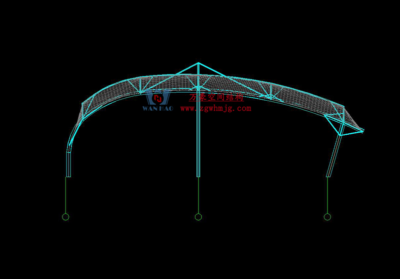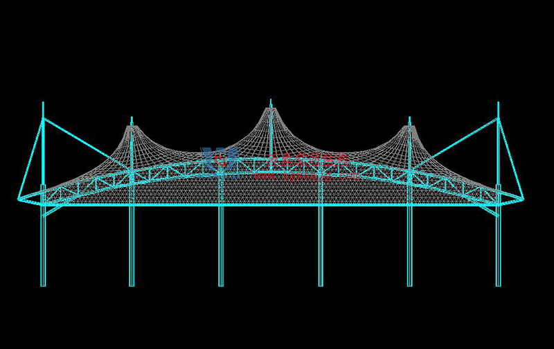 球場采用膜結構形式,可以充分發揮建筑師的想象力,又體現結構構件清晰受力之美。作為一種柔性材料,其在建筑上的造型變化多端,是其它材料所不能比擬的,因此也造就了膜結構多變的特性,充分體現出建筑形體塑造力和輕盈、飄逸的動感曲線外觀。
