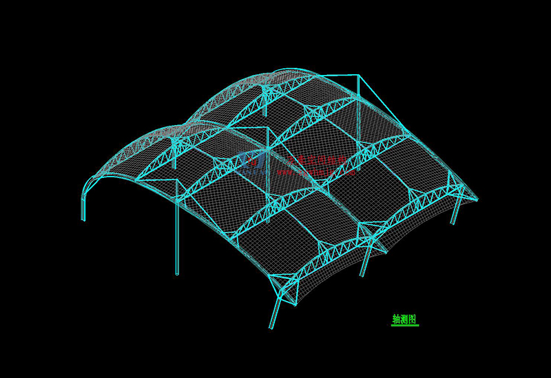 張拉膜結構體系的基本組成單元為支承柱,張拉索及膜材。鋼索在周邊對膜施加張拉應力形成雙曲拋物面的受力狀態,膜片兼有結構受力與建筑屋蓋隔斷室內外環境的雙重功效。張拉膜結構自身重量輕,僅為鋼結構的1/8,混凝土結構的1/40。膜結構對水平方向作用的地震力與風力有良好的適應性,結構自身有吸收地震力與風力的機理。