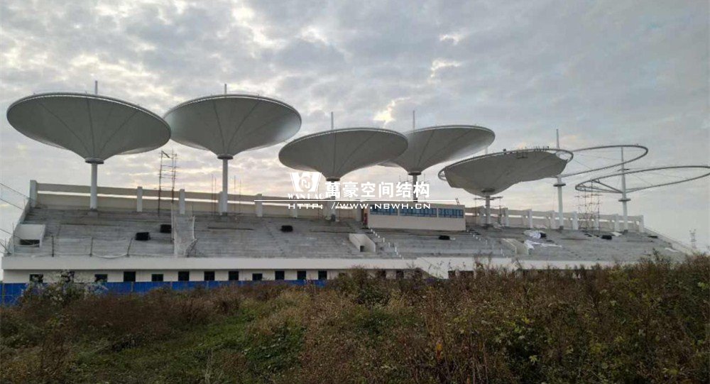 我公司有幸承接“常州大學西太湖校區體育看臺項目”。項目位于常州市延政西路與豐澤路交叉口 (常州大學西太湖校區體育場內)。該工程鋼結構用量153噸、膜展開面積3500㎡,膜材采用進口法拉利膜材。